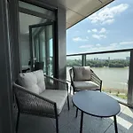 Lägenheten Eurovea Tower River View Down Town Bratislava med 1 sovrum har utsikt över floden och ligger bara 500 meter från Eurovea och Ludus. Den 60 m² stora lägenheten erbjuder en parkering på plats och moderna bekvämligheter som Wi Fi.